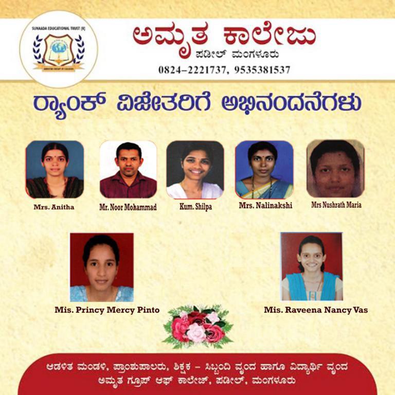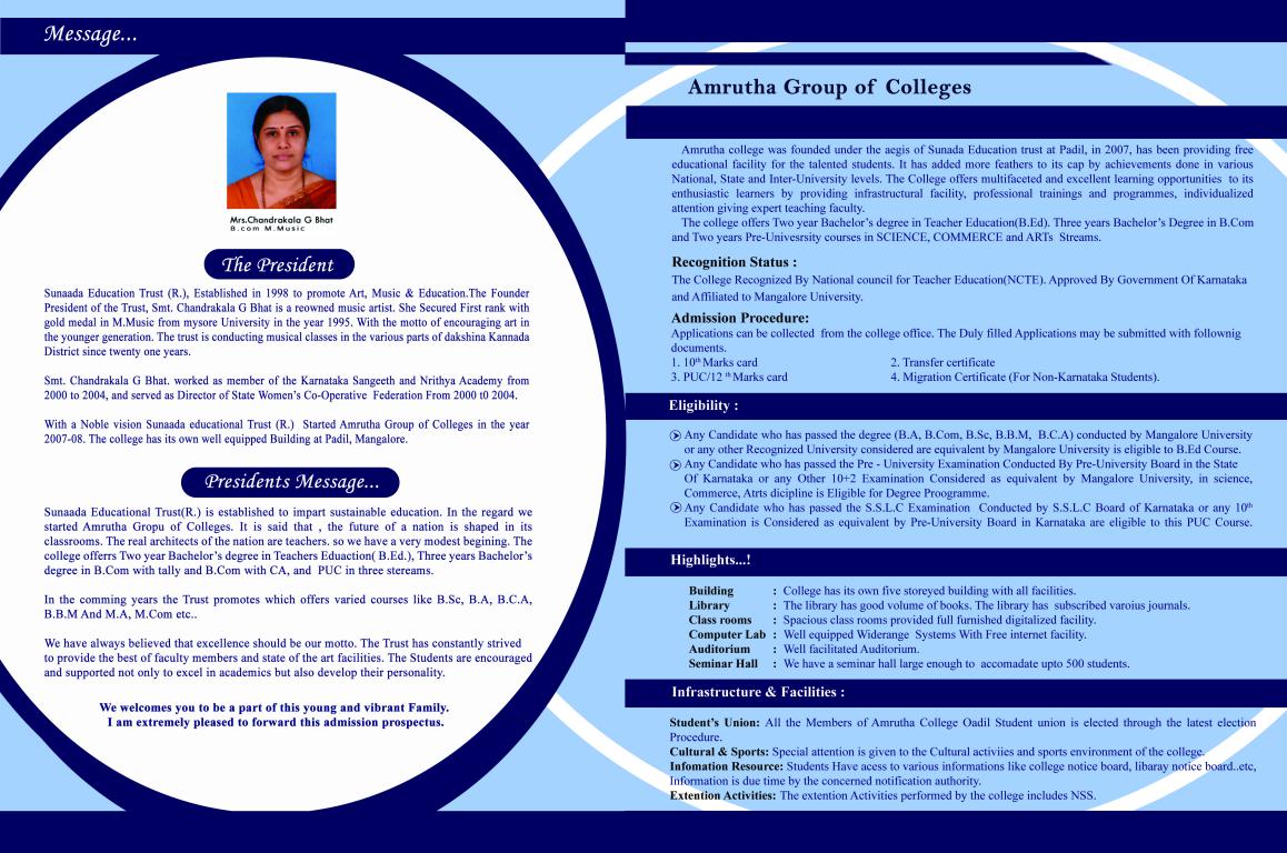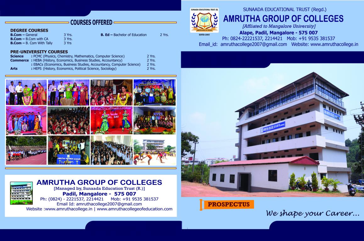 Amrutha College, established in 2007. Recognized by Government of Karnataka and affiliated to University of Mangalore. Located in Mangalore at Karnataka. The Institution is managed by Sunaada Educational Trust ® .